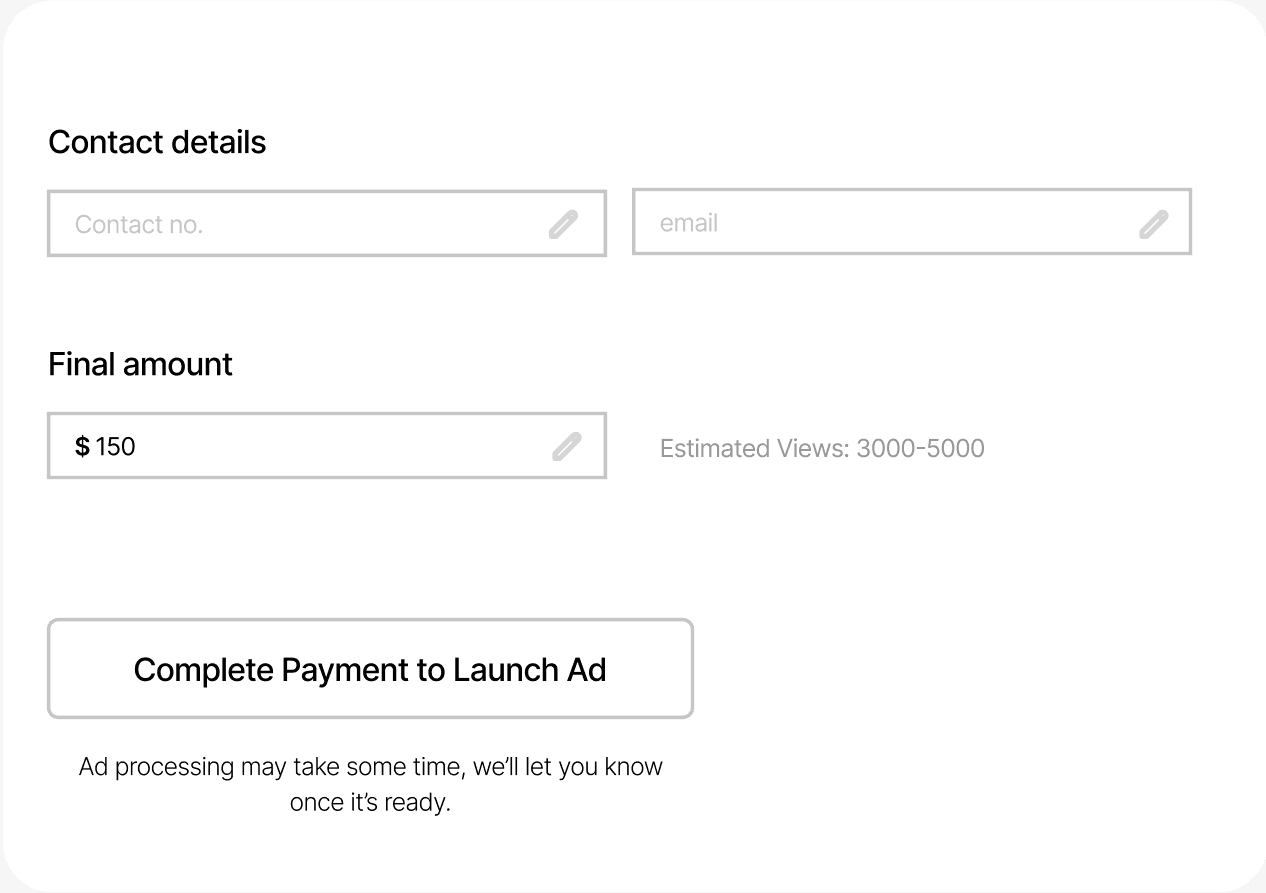 As we were working towards the creating a campaign page, we quickly realised to have a progress flow at the top to keep the agents aware of the details they have to address to finally launch the campaign, with that came the responsibility to not the payment completion feel too instructive but also have clear transparency about the amount and mode of payment.