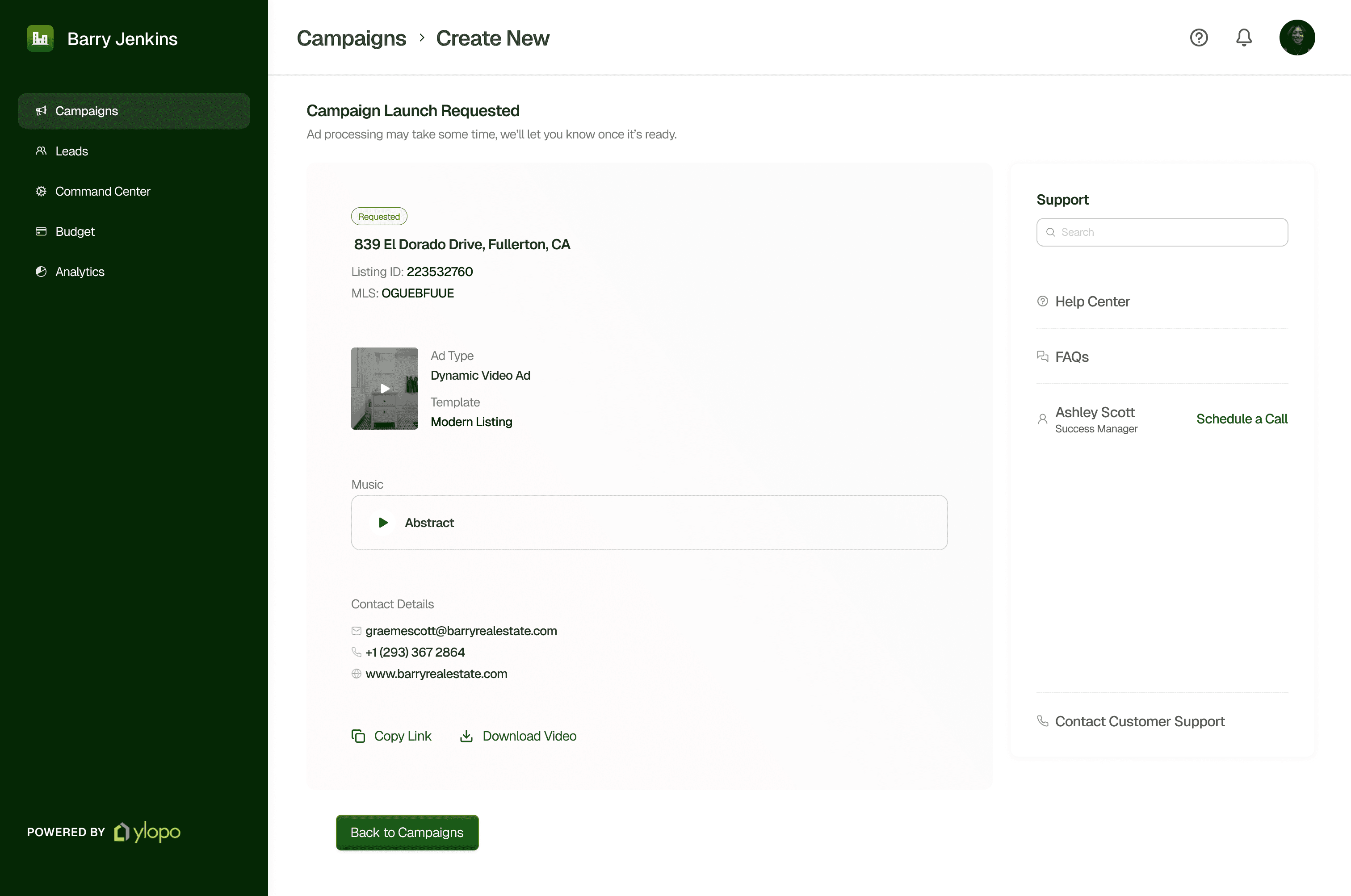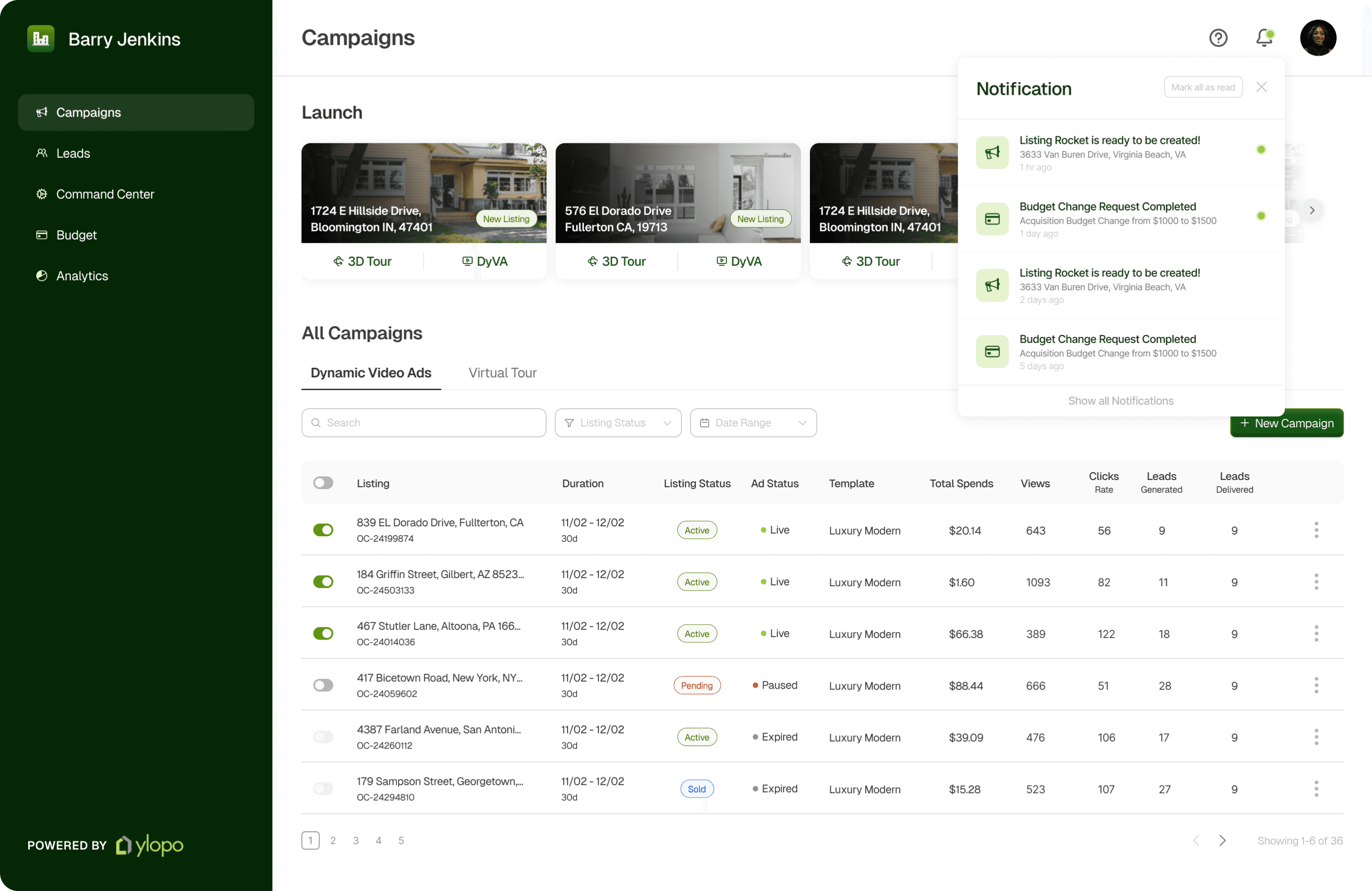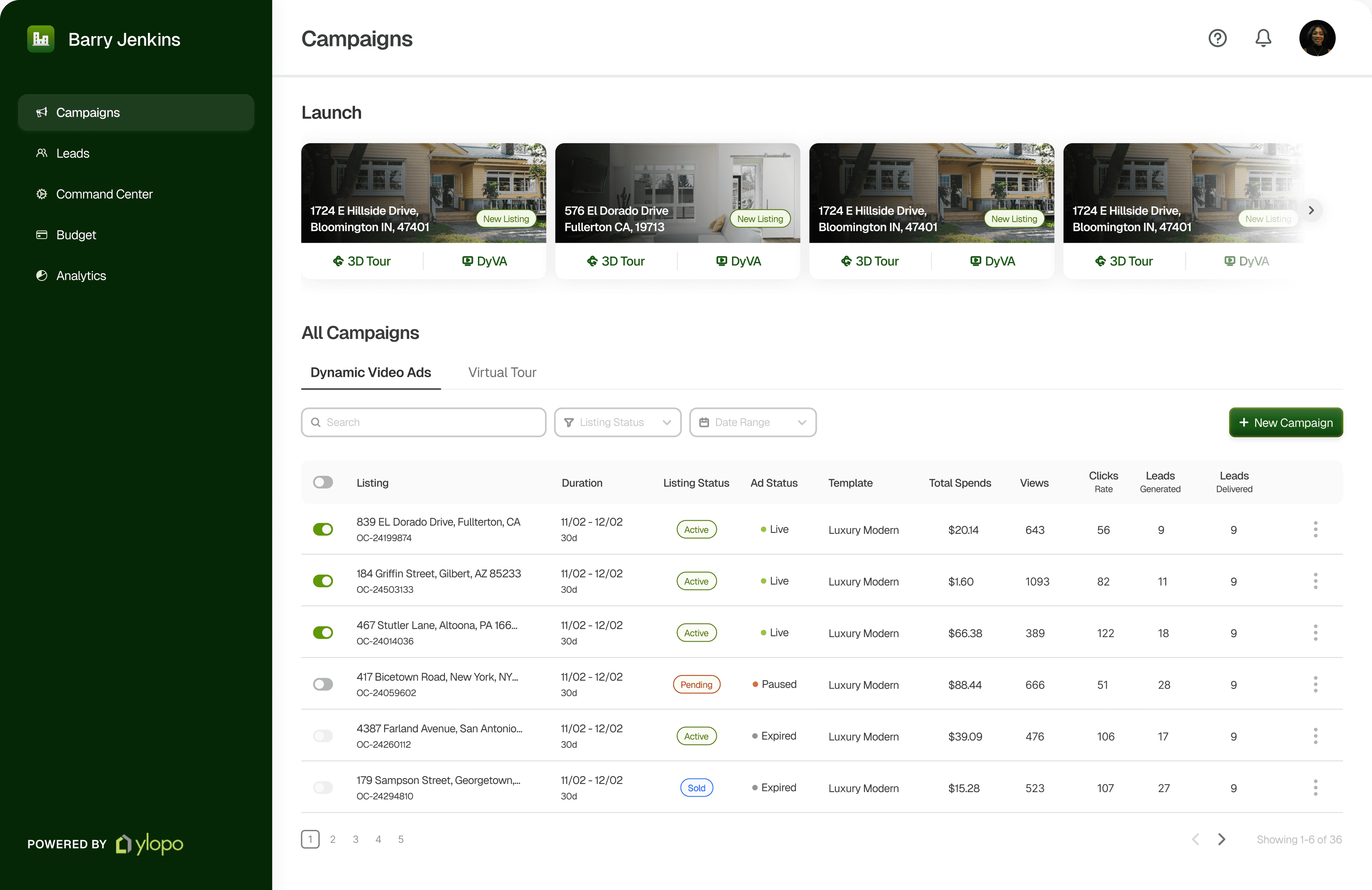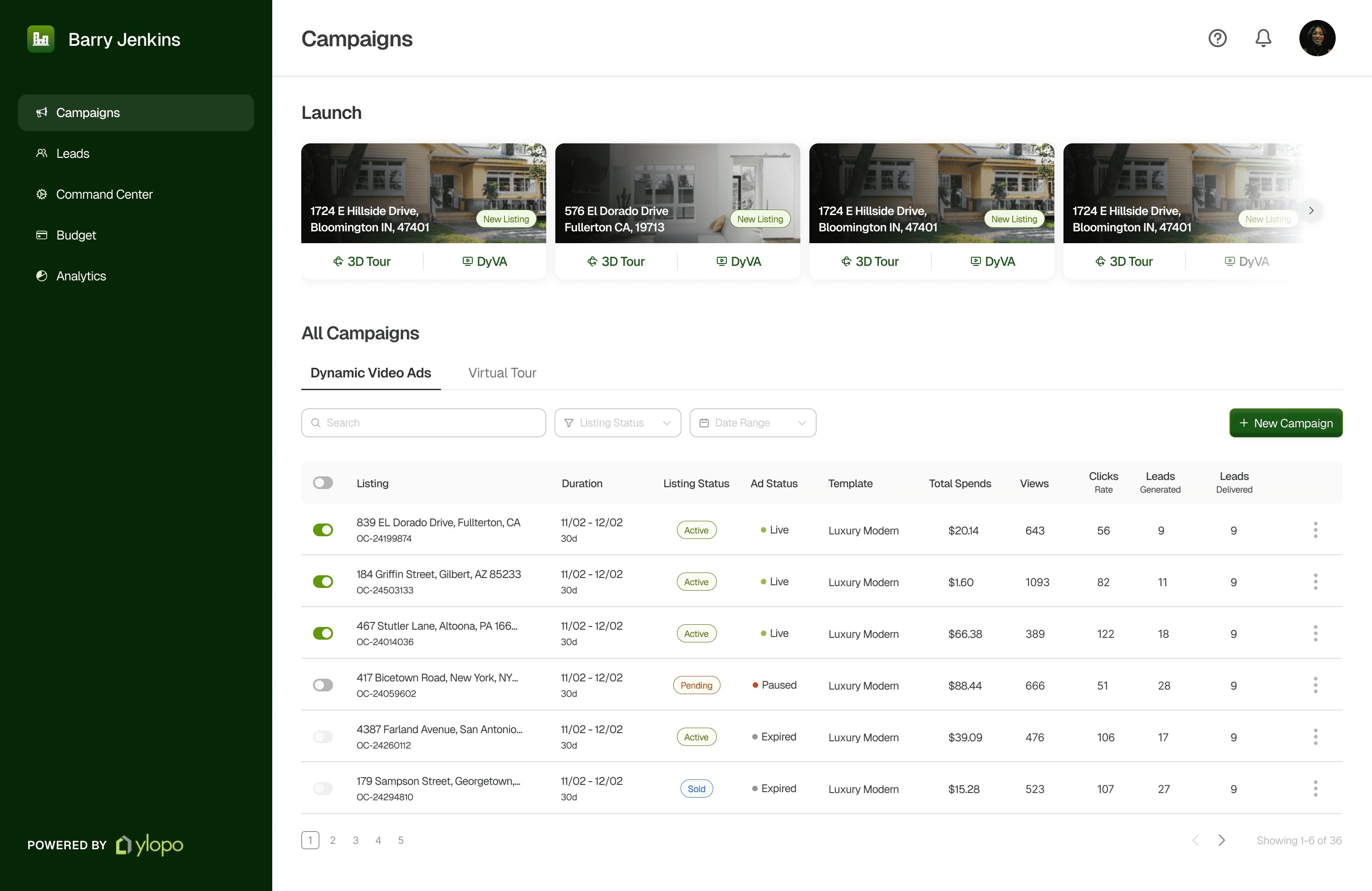 We wanted to help create a campaign creation dashboard where the real estate teams can effortlessly find campaign listings available, and conveniently set up the campaign to launch for themselves. To where Ylopo’s Mission control now becomes accessible for the team agents and is more intuitive with clear hierarchy and status updates.