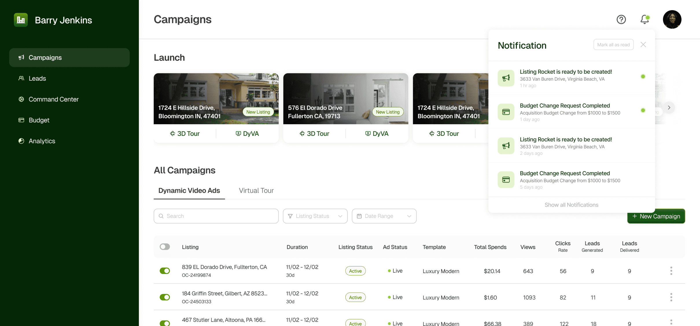 Simplified campaign launching flow to reduce clicks, improved listing cards for better readability.